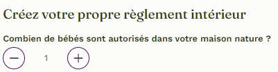 En utilisant le signe "-" ou "+", vous pouvez indiquer le nombre de bébés que votre maison nature peut accueillir (un seul, par exemple).