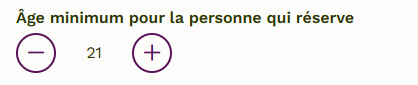 Vous pouvez indiquer l'âge minimum que doit avoir la personne qui réserve (21 ans, par exemple).